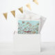 Mochila moderna de papel en el diseño de arte floral de color burdeos acuático sobre una elegante luz verde azulada. Diseñar productos de papel para su próximo evento especial. El feliz texto de cumpleaños puede ser personalizado para adaptarse a cualquier celebración especial, incluyendo boda, o un aniversario especial, o evento corporativo. Personalizar estos productos de papel para coordinar tu día especial.