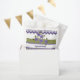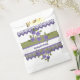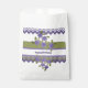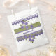 Bolsa de favores con flores moradas para tu próximo evento especial, personaliza el texto de feliz cumpleaños para cualquier ocasión, y el fondo verde oliva puede cambiarse a cualquier color.