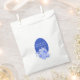 Elegante bolsa de ducha de matrimonio blanca con un área de texto ovalado azul real decorada con un ramo de flores azul y blanco. Personalice el texto en blanco para que se ajuste a sus necesidades. Se ofrecen invitaciones y suministros de fiesta coincidentes.