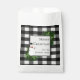El regalo de paquete favorece esta temporada de vacaciones con una bolsa de favoritas de búfalo de nieve. El diseño de la bolsa favorita incluye una caja adornada con ramas de pino y un encantador muñeco de nieve sobre un fondo de manto de búfalo blanco y negro. También hay artículos de regalo y de vacaciones disponibles con este diseño.