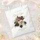 Personalice con la información de su evento para crear una bolsa de favores única que seguramente impresionará a sus amigos y familiares. Diseñado con elegantes fondos de ramos de magnolias y elementos de diseño como ramos florales de vino tinto y crema, y fuentes modernas.