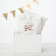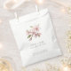 Esta elegante bolsa de bienvenida presenta una delicada flor de color rubí pintada a mano centrada en un fondo blanco y fresco. La bolsa muestra los nombres de la pareja y la fecha de boda en un refinado tipo de serif debajo de la obra de arte floral, con un mensaje de agradecimiento en un tipo de letra clásico y subestimado en la parte inferior. El diseño limpio y minimalista y el suave motivo botánico le dan un toque romántico y contemporáneo a su celebración. Ideal para empacar dulces, pequeños regalos o recuerdos, esta bolsa de favores añade un acento sofisticado y atento a cualquier evento nupcial o nupcial.
