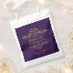 Púrpura y elegante bolsa de favores de boda de marco dorado.