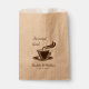 Las parejas siempre están buscando una manera divertida de dar un regalo único a sus regalos. Este divertido bolso de favores de boda es ideal para los que quieran darle sus granos de café favoritos. Deje que sus huéspedes saboreen su mezcla favorita en su boda y después dese un poco para probar en casa. ¡Qué gran idea! Esto puede ser personalizado por usted con los nombres de la novia y el novio y la fecha del boda. La imagen del café caliente al vapor y las palabras "una mezcla perfecta" se aplican tanto al café como a la pareja recién casada. Añada estos detalles a la cesta y anime a sus huéspedes a que se lleven una casa como recuerdo del día de la boda. Después de la recepción de tu boda con el baile, es posible que necesites una taza de café a la mañana siguiente. Contáctenos si necesita ayuda para personalizar de este diseño.