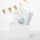 Bolso de bienvenida con una tarjeta de bienvenida con una imagen de un bebé param azul turquesa de antaño. Personalice el texto del personalizado gris para su evento de ducha de bebé. Excelente para todas las necesidades de favor de tu partido.