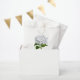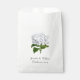 Elegante bolsa blanca con hermosas obras de arte de una horangea blanca. Personalice el texto del personalizado negro para el evento boda. Ideal para los dulces y los bares.
