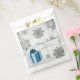 El regalo de paquete favorece esta temporada de vacaciones con una bolsa de regalos para Navidades azules. El diseño de las bolsitas favoritas incluye un regalo de Navidades envueltos vibrante adornado con copos de nieve grises y blancos sobre un fondo gris. También hay artículos de regalo y de vacaciones disponibles con este diseño.