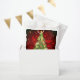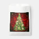 Bolso de regalo de vacaciones mostrado en blanco con una estampada artística festiva de árbol de Navidad. Personalizar este artículo o compra tal cual.