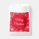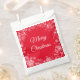 Bolso de regalo de regalo de vacaciones mostrado en blanco con una impresión de copos de nieve rojos. Personalizar este artículo o compra tal cual.