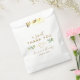 Diga "Gracias" con estilo con esta bolsa de la boda de Eucalipto. Con un encantador mensaje "A Sweet Gracias" en oro elegante, con sus nombres y fecha de boda, esta bolsa de favores ofrece una manera reflexiva y personalizada de agradecer a sus invitados. El diseño del corazón dorado, entrelazado con la vegetación de eucalipto, le da un toque de elegancia a su celebración. Perfecto para pequeñas golosinas, recuerdos o keepsakes, estas bolsas favoritas son una forma encantadora de mostrar su gratitud.