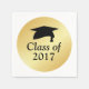 Fondo metálico dorado con letras negras en negrita. La silueta de un tapón negro de graduación con tassel se sitúa por encima de la Clase de 2017. El diseño sencillo y clásico es perfecto para las fiestas de graduación. El texto se puede personalizar fácilmente. Si te gusta el diseño pero ya no es 2017, no te preocupes. Puede insertar el año de graduación correcto.