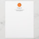 Plantilla elegante minimalistic moderna del papel con membrete con un círculo del efecto del grabado en relieve del naranja con el monograma en él. Seguro hará una impresión en su cliente. También disponible en otras variaciones del color. Este diseño del papel con membrete está también disponible como versión donde están el círculo y toda la información del negocio en la parte inferior. Y usted puede también encontrar una tarjeta de visita horizontal o vertical a juego enumerada abajo.