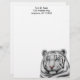 El diseño original de la bella arte de un tigre blanco del ilustrador Carolyn McFann del estudio de ronroneo de dos gatos en el papel con membrete adaptable para el gato grande aviva.