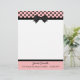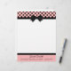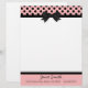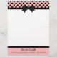 Efectos de escritorio bonitos del papel con membrete, con los gráficos de un rosa, con el jefe negro del lunar, con una frontera negra y un arco negro, en el centro. Una banda negra, en la parte inferior, actúa como frontera para la pieza rosada del pie de página de la página, con el texto negro de encargo listo para personalizar. Mirada retra con todo elegante bonita.