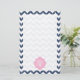 Papel de los efectos de escritorio que ofrece un diseño azul del galón del ikat. Personalice con su monograma sobre diseño rosado del quatrefoil.