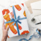Papel envuelto para los Navidades y el hombre de pan de jengibre de Año Nuevo cocina con sombrero de Santa , dibujo. Es fácil añadir color de fondo personalizado.