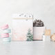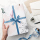 Papel de envolvimiento de Baby Shower en invierno con pinos y copos de nieve.