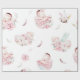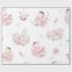 Papel de envoltura de ducha de bebé chica con adorables bebés acuarelas y plumas de fondo blanco.