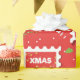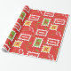 patrón sin fisuras con sellos postales, caramelo de cono y reno. Los navidades tienen un patrón de colores rojo y verde.