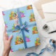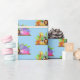 Papel envuelto mostrado con unos amigos lindos del zoológico impreso en un color de fondo azul claro. Personalizar este artículo o compra tal cual.