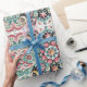 Envuelve tus regalos con elegancia y encanto cósmico usando papel envuelto "Celestial Blossom". Este impresionante diseño presenta intrincados patrones de estrellas, lunas y motivos florales inspirados en la mandala, en una vibrante pero relajante paleta de colores rosa, turquesa, dorado y blanco. Perfecto para cumpleaños, vacaciones o celebraciones especiales, "Celestial Blossom" añade un toque de sofisticación y creatividad a sus regalos. El diseño intrincado y simétrico hará que tus regalos sean inolvidables.
