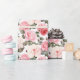 El papel de envolvimiento se muestra con una bonita impresión floral de rosas rosas rosas rosas. Personalizar este artículo o compra tal cual. Imprimir con licencia