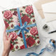 El papel de envolvimiento se muestra con una hermosa impresión floral de rosas rojas. Personalizar este artículo o compra tal cual. Imprimir con licencia