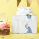 Envolver regalos para la novia y el novio con un rollo de papel de envolvimiento de Boda de pavo real azul. El diseño de papel envuelto presenta un pavo real vibrante que descansa sobre una delicada vid follaje blanco sobre un fondo de grano. También hay artículos de papelería y regalos adicionales para bodas disponibles con este diseño.