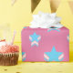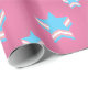 Papel de envolvimiento rosa con estrella en los colores de la bandera arco iris transgénero de rosa, azul y blanco; diseño de lgbtqiap+, patrón estelar