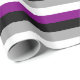 Papel envuelto con bandera de asexualidad con rayas de arcoiris de negro, gris, blanco y violeta; diseño de orgullo de as