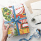 Diseño personalizado Papel de ajuste con acabado mate Navidades Diseño de mercado con familia que se disfruta mientras los Navidades compran