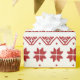 Papel para envolver de suéter marrón nórdico, rojo y blanco. El diseño rústico presenta un estilo suéter nórdico con flores y un arte moderno.