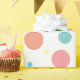 Papel de envoltura con tema polka punteado juguetón. Papel blanco con coloridos puntos de polka esparcidos como confeti. Una capa extra de alegría para tu regalo perfecto.