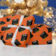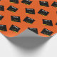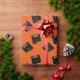 Envoltura creativa para regalo de graduación y decoración fiesta con tapón negro y dorado de graduación en un fondo naranja. Editar texto para agregar el nombre de la graduación y el año de clase superior.