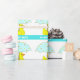 Un niño pequeño o una niña pequeña, ideal de decoración de envoltura de regalo o de decoración de ducha de bebé, con un lindo pato de goma con un ilustracion de paraguas. Para personalizar, edite texto para agregar el nombre del recién nacido.