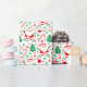 Envoltura creativa de regalo de vacaciones de golf en disco con divertidos Santa jugando al golf de frisbee rodeado de dulces de Navidades rojos y verdes, galletas y alegría cruda para la temporada de fiestas.