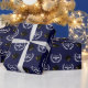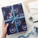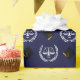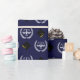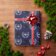 Envoltura de regalo de la escuela de derecho creativa con escalas de justicia y patrón de topes de graduación para nuevo abogado.