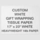 PAPEL DE TEJIDO BLANCO DE 18 lb 17" x 23" (GRAN TAMAÑO) impreso por un Personalizado personalizado PARA LA MESA BLANCA EN BORRADOR.Diseñar, crear, crear uno propio. Su foto, imagen, texto, logotipo, gráficos en una impresión de color de extremo a extremo. Papel de 10lb disponible también en 7 colores, comparable al papel tisular estándar. Lo mejor para envolver joyas, pequeños regalos, favores de fiesta, botellas de vino y champán, y cajas de regalos.