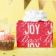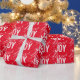 Papel de embalaje de vacaciones con texto blanco que dice Paz y Alegría. Puede personalizar el fondo rojo para que sea cualquier color que desee.