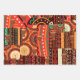 Patrón afrocéntrico tribal de orgullo negro hecho de tejido africano kente y tambores africanos.