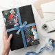 Navidades Escena tablero de ajedrez Papel de envolvimiento negro fondo negro y escenas dispuestas como tablero de ajedrez, un papel único de ilustraciones vintage