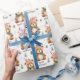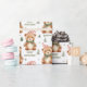Adorables osos de peluche acuarela con pañuelos y sombreros de Santa con mini pinos y letras de "Navidades Beary". Personalice con el nombre de un niño un conjunto dulce y amigable para las vacaciones que haga que cada regalo se sienta especial.
