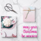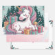 Haz regalos extra mágicos con papel de envoltura con unicornio entre árboles de Navidad y regalos en tonos suaves rosa y turquesa. Perfecto para los niños, los amantes del unicornio, y cualquiera que quiera paquetes festivos y extravagantes.