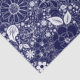 Beauties botánico-TISSUE WRAPPING PAPER-Una huella de fondo de varias hojas de flores. puntos y remolinos. Las flores son de diferentes tamaños, desde las grandes hasta los pequeños puntos. Las flores botánicas y las hojas están todas impresas en blanco sobre un fondo azul oscuro sólido. Es un diseño divertido y caprichoso, perfecto para los amantes de las flores y los jardines. Esta impresión botánica está disponible en varios colores de fondo. También se ofrecen diversos regalos Zazzle y suministros de fiesta.