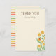 Envía un mensaje de agradecimiento después de las fiestas de cumpleaños o eventos especiales con esta papelería plana inspirada en la naturaleza que presenta texto fácil de editar. Cambia el titular de "gracias" a un mensaje de tu elección y edita el texto del nombre para un regalo verdaderamente único. Encantadoras flores amarillas de bill ball craspedia ilustradas florecen en la parte frontal con un pequeño detalle de mariquita, mientras que la parte posterior presenta una franja de arcoíris colorida de colores retro inspirados y neutrales en cuanto al género, como verde menta, azul cielo, óxido, amarillo dorado y rojo coral sobre un fondo cremoso.