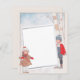 Coloca estas páginas dentro de tus tarjetas de Navidad para agregar una nota especial de vacaciones para tus seres queridos este año. Un niño y una niña antiguos sostienen regalos de Navidad y están contra un fondo de abedules. Página blanca con borde plateado. Tarjeta de Navidad a juego disponible en la tienda enfrancais.