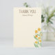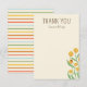 Envía un mensaje de agradecimiento después de fiestas de cumpleaños o eventos especiales con esta papelería plana inspirada en la naturaleza que presenta texto fácil de editar. Cambia el titular "gracias" a un mensaje de tu elección y edita el texto del nombre para un regalo verdaderamente único. Encantadoras flores amarillas de bill ball craspedia ilustradas florecen en la parte frontal con un pequeño detalle de mariquita, mientras que la parte posterior presenta una franja de colores de arcoíris coloridos de colores neutrales y retro como verde menta, azul cielo, óxido, amarillo dorado y rojo coral sobre un fondo cremoso.