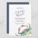 Esta invitación de boda de playa presenta sus nombres en una tipografía de escritura a mano elegante con los detalles del evento en una fuente serif de gris carbón clásico sobre un fondo blanco crujiente. Mi cangrejo original de acuarela en tonos de rojos, azules y verdes adorna la parte delantera. La tarjeta de invitación se invierte a un color azul marino complementario. Una elección rústica, pero chic costera para bodas de destino informales, náuticas o de verano. Utilice los campos de plantilla para personalizar su invitación y verla antes de comprarla. Para ver todo este tema de papelería de boda, visite DoTellABelle en Zazzle en https://www.zazzle.com/collections/beach_wedding_watercolor_crab-119096800683513365