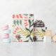 Un diseño botánico muy animado con tonos verdes y corales destacados.