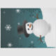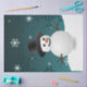 Llene las bolsas de regalo de los Navidades con este lindo y Verde azulado papel de Navidades de invierno de Snowman Winter Scenery. El diseño de papel de tejidos muestra a un muñeco de nieve feliz en una escena de invierno nevada con un fondo verde azulado adornado con copos de nieve a color. También hay artículos de regalo y de vacaciones disponibles con este diseño.